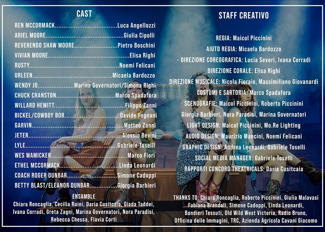 Chiara Roncaglia, Cecilia Ruini, Daria Cusitcaia, Elia Bertelli, Giada Taddei (cover Ariel Moore), Greta Zagni, Ivana Corradi (swing), Marina Governatori, Nora Paradisi, Rebecca Chessa